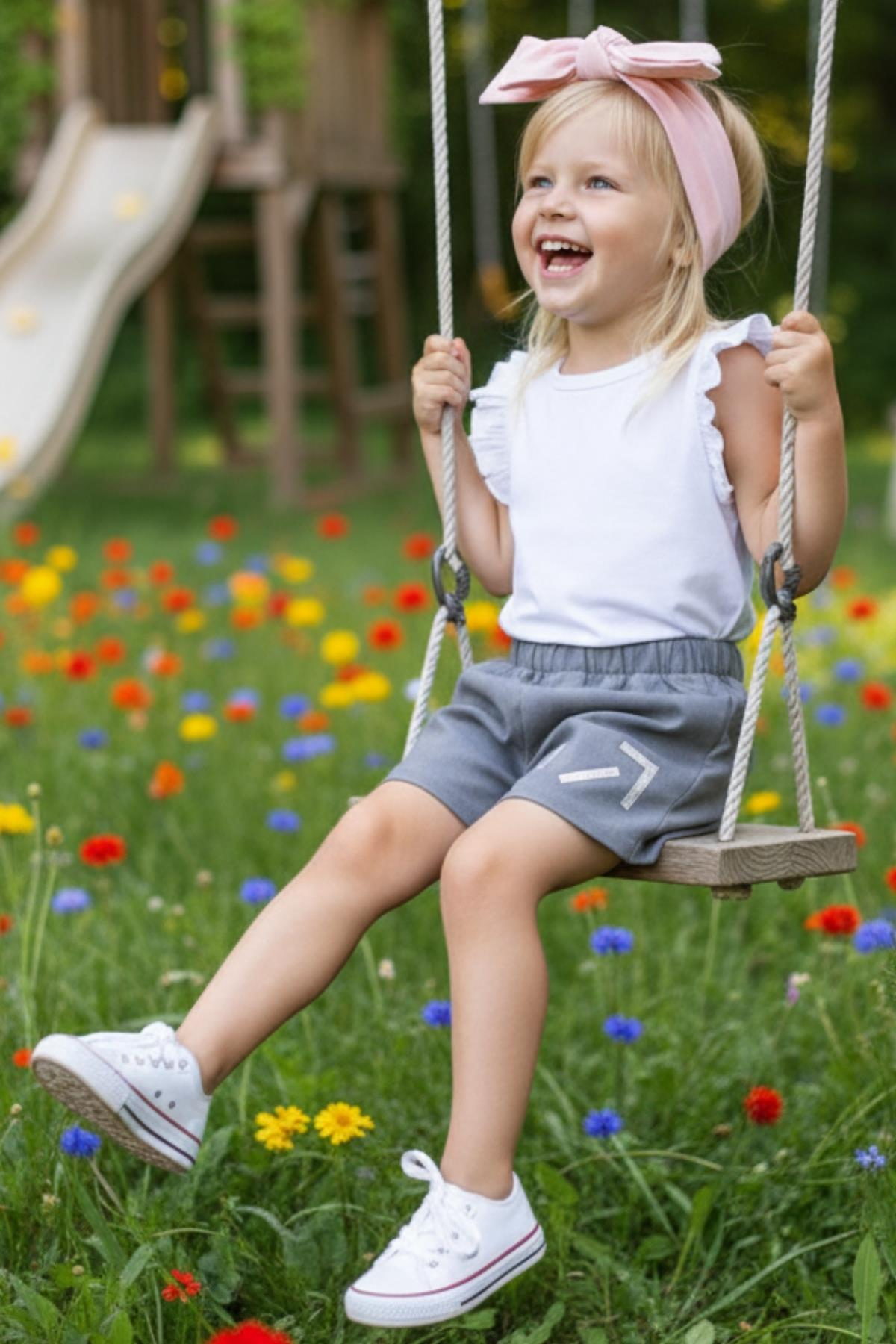 Kız Çocuk Kot Şort Bandana Takım / Pudra