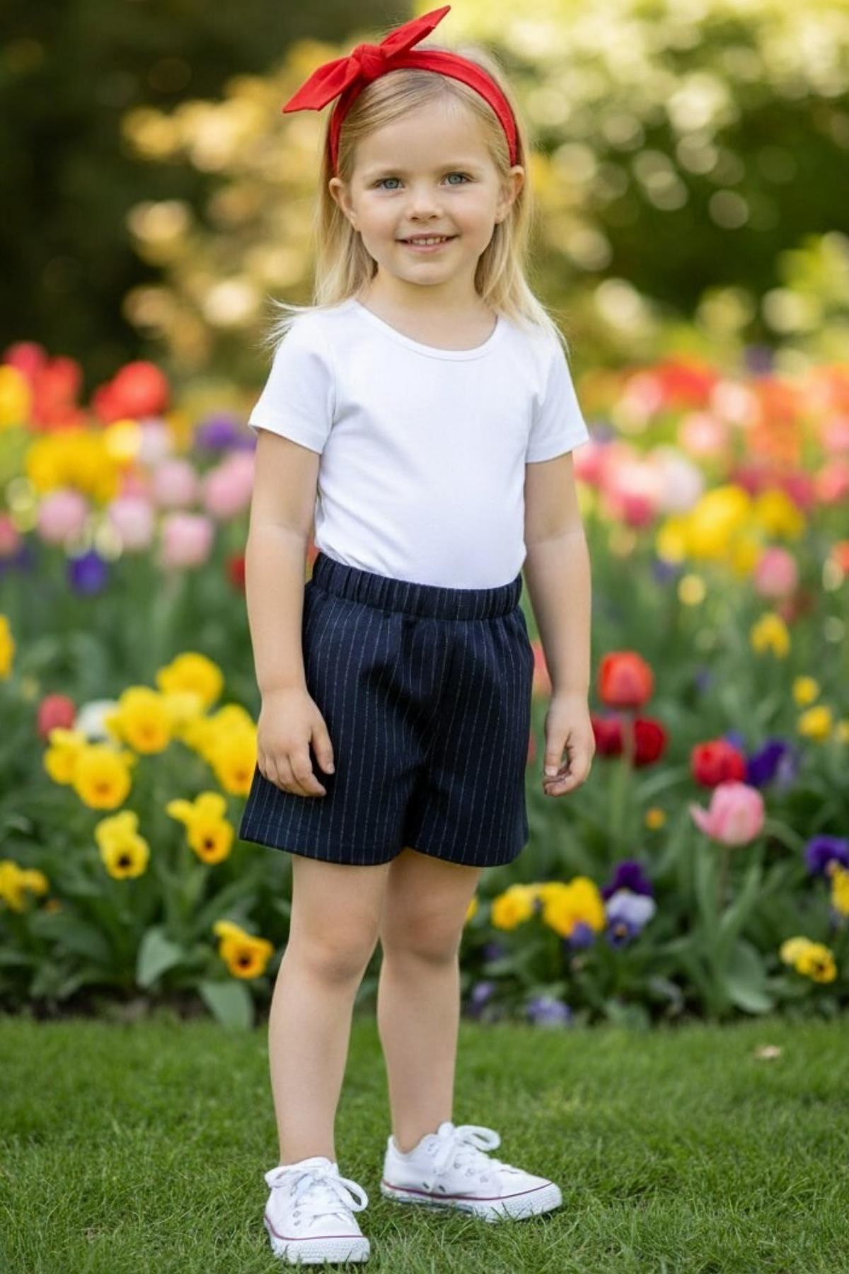 Kız Çocuk Çizgili Jean Şort Kırmızı Dev Fiyonk Bandana